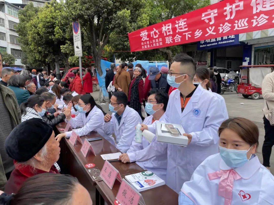 早上9點,問診村民排起了長隊,四川省人民醫(yī)院的專家和縣人民醫(yī)院的醫(yī)務(wù)人員一邊忙著測量血壓血糖,一邊詢問病情,提出保健意見。
